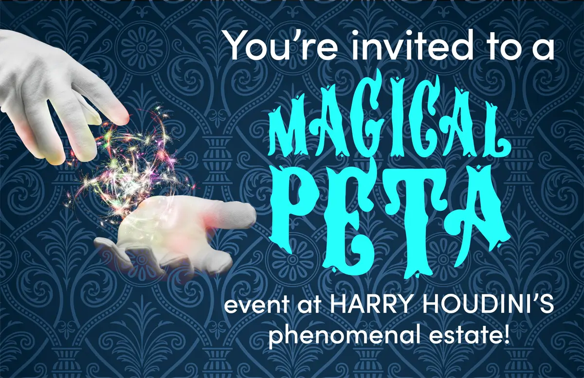 We’ve made fur and exotic skins disappear from big stores, and helped thousands of beagles escape laboratory cages. In fact, PETA’s accomplishments are nothing short of MAGICAL because YOU play a vital role as our magician’s assistant.