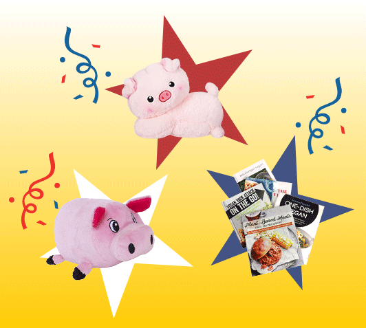 Free tasty vegan Oscar Mayer NotHotDogs, plus party keepsakes including pig plushies, dog toys, a vegan cookbook, and more (all free!) while supplies last